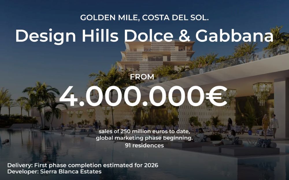 When it comes to luxury brands in the real estate market on the Costa del Sol, we must mention Design Hills Dolce & Gabbana: a premium complex of 91 residences developed by Sierra Blanca Estates and Dolce & Gabbana on the Golden Mile. The project was presented in September 2023, and since then, the properties have been marketed to a select group of clients from both companies, recording sales of 250 million euros to date, which accounts for 37% of the total residences.