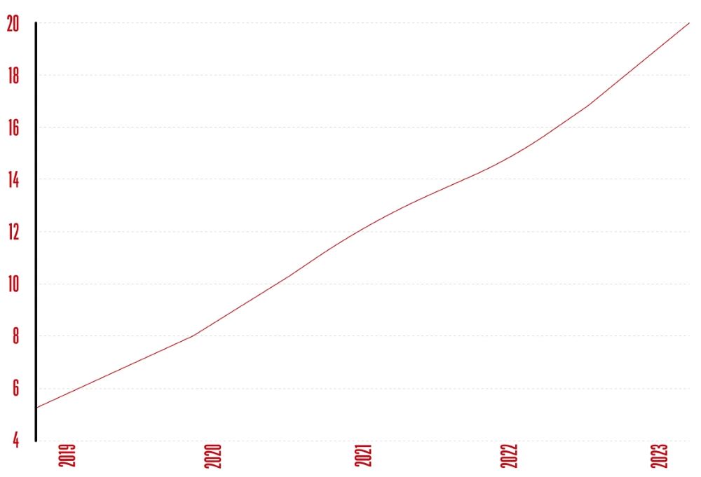 The temporal analysis of real estate projects in Marbella and the Costa del Sol shows an upward trend over the past five years. In 2019, five new developments were recorded. This number increased to eight in 2020, twelve in 2021, fifteen in 2022, and reached twenty projects last year.