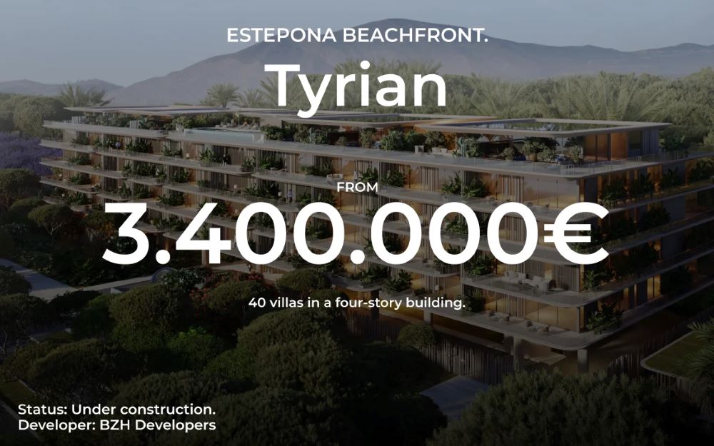 Tyrian Beachfront Estepona is a fantastic four-story building at the entrance of Estepona, marking the first branded luxury residence on the Costa del Sol. By February of this year, over 40% of its residences had been sold, less than two months since its pre-launch and without an official sales release.