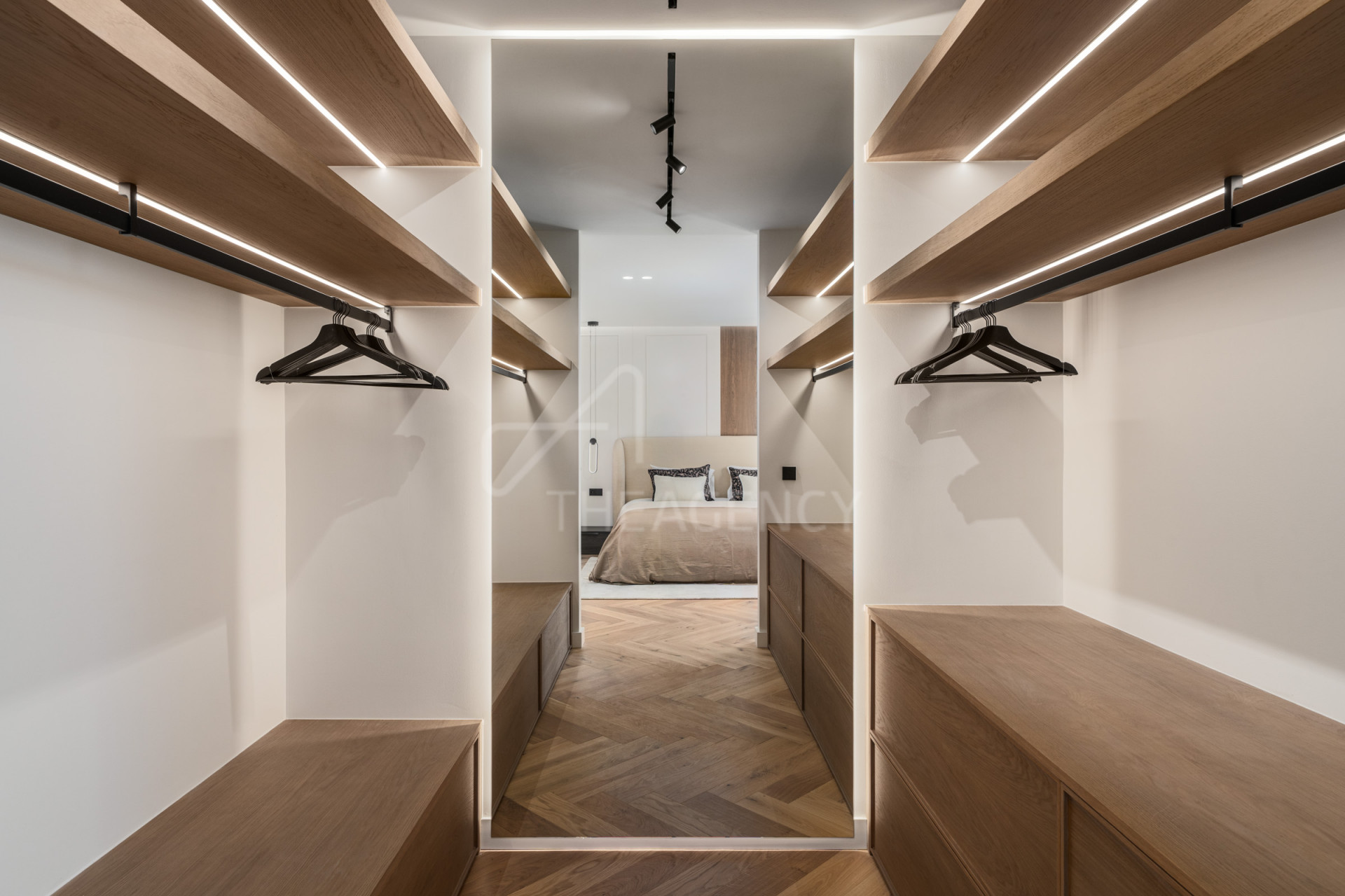 Completed in 2024, the renovation emphasizes clean lines, natural materials, and purposeful functionality. The home encompasses approximately 164 m² of interior living space across three levels, complemented by a 49 m² rooftop solarium.