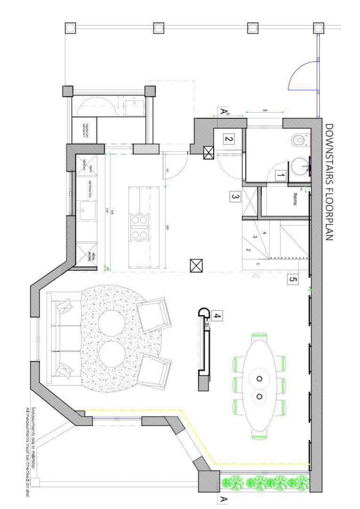 The lower level features open-plan living, dining, and kitchen areas with direct access to a private balcony. The kitchen is fully equipped and integrated into the main living space. A guest toilet is also situated on this floor for convenience.