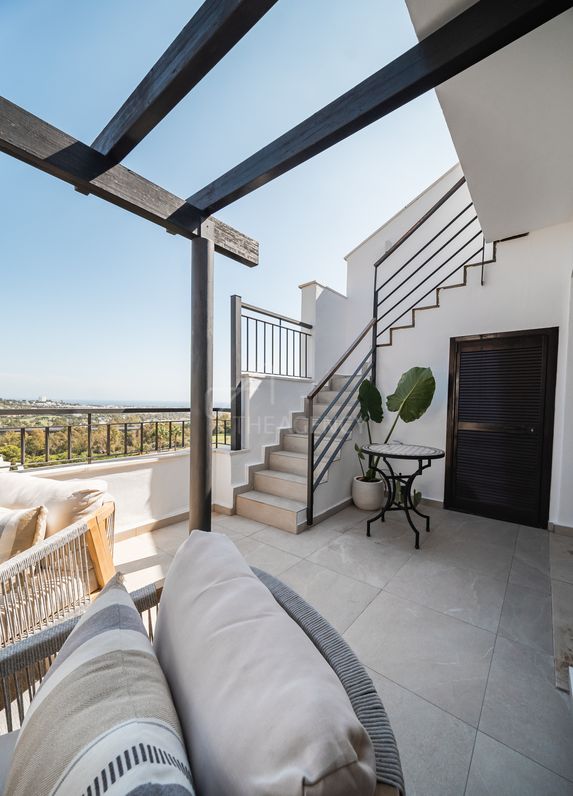 Part of a quiet and exclusive community of just 42 apartments, this penthouse also comes with access to landscaped gardens and a communal pool, providing the perfect balance of peace and leisure.