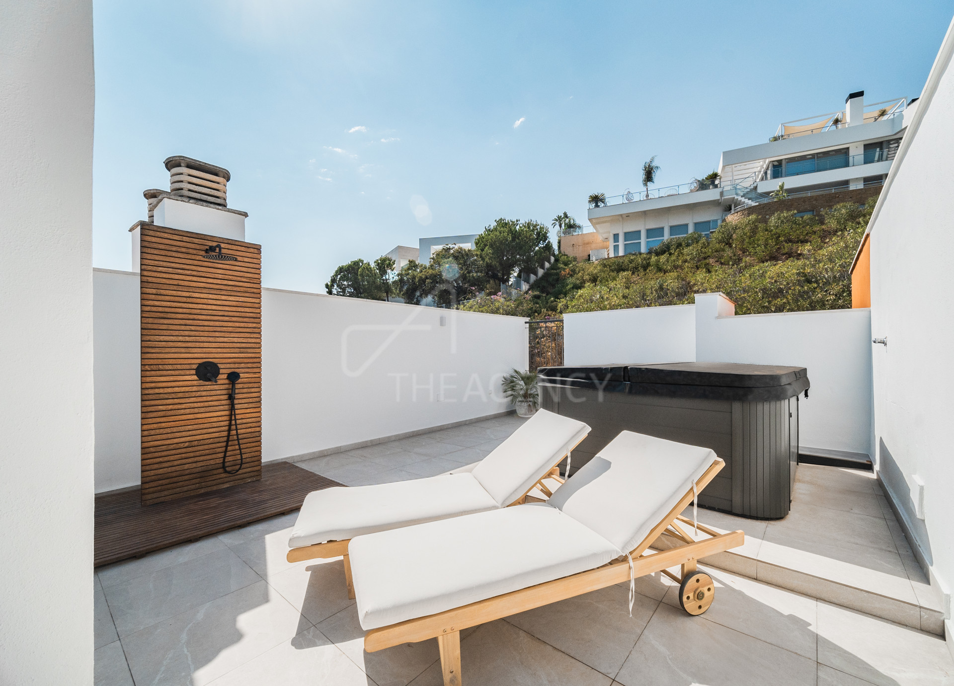 The star of the property is the expansive 99 sqm terrace—a private haven where you can enjoy meals with a view, relax with a book, or simply marvel at the breathtaking panorama of the southern coastline. It’s a space that invites you to slow down and savor life.