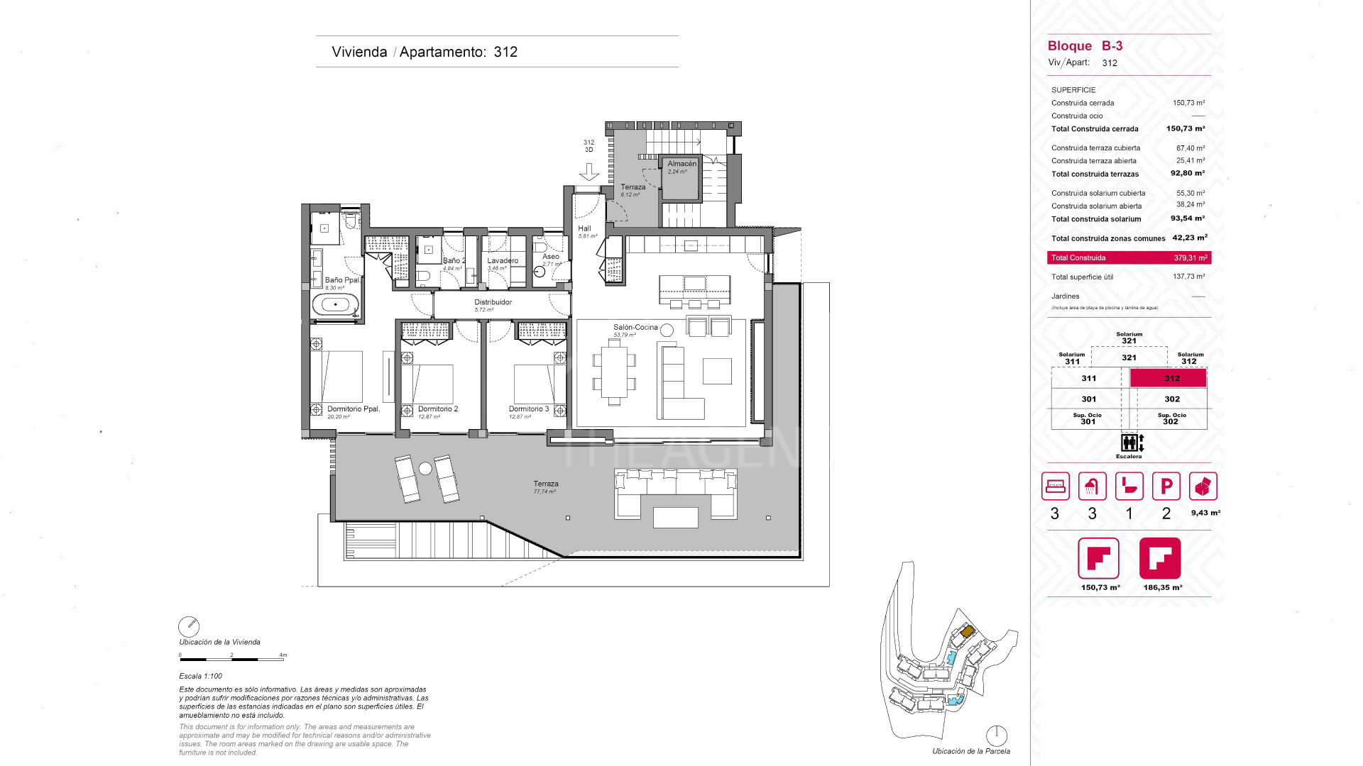 Impressive penthouse with panoramic views, solarium and pool, 3 bedrooms, 3 bathrooms and 1 guest toilet