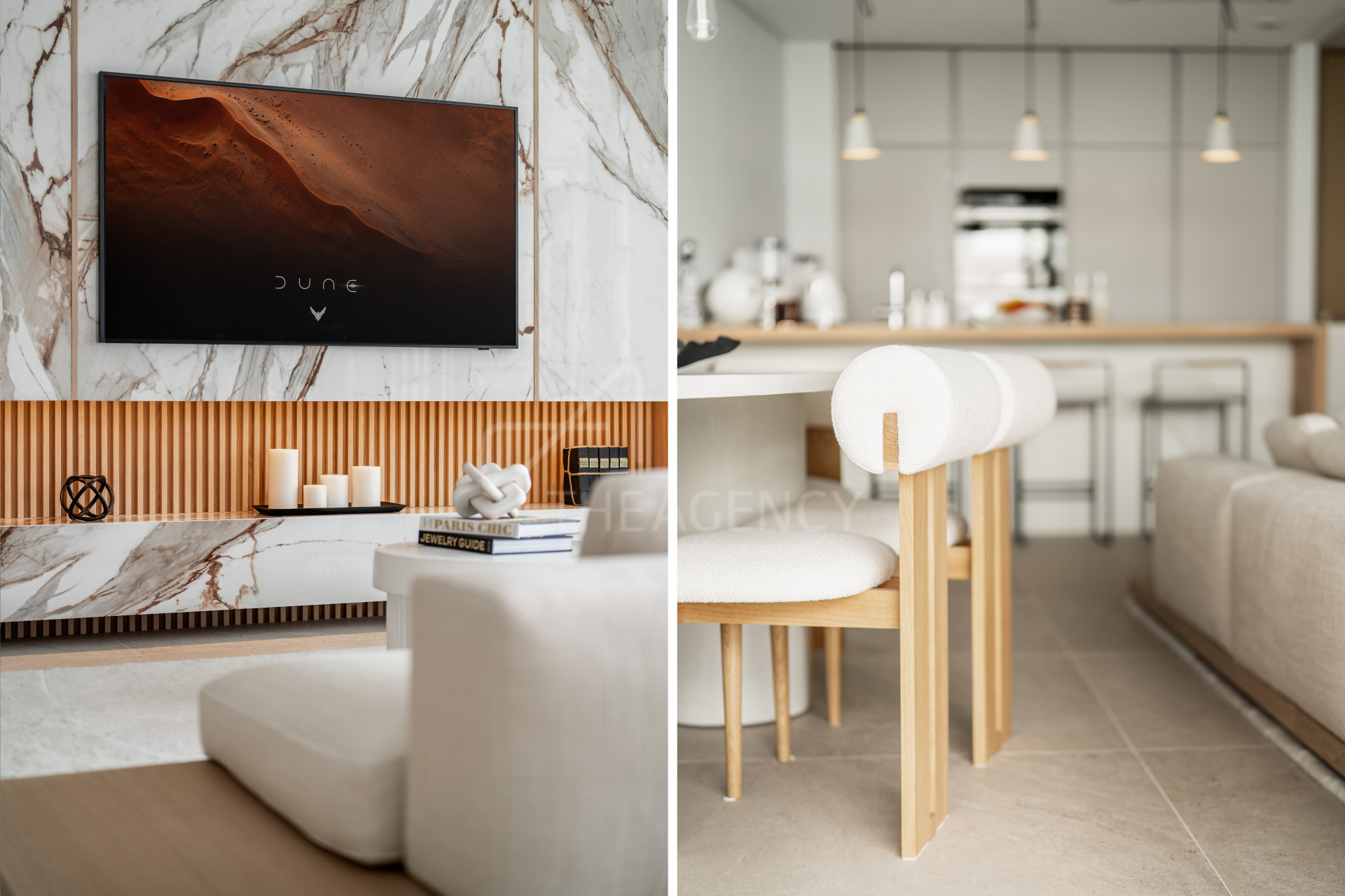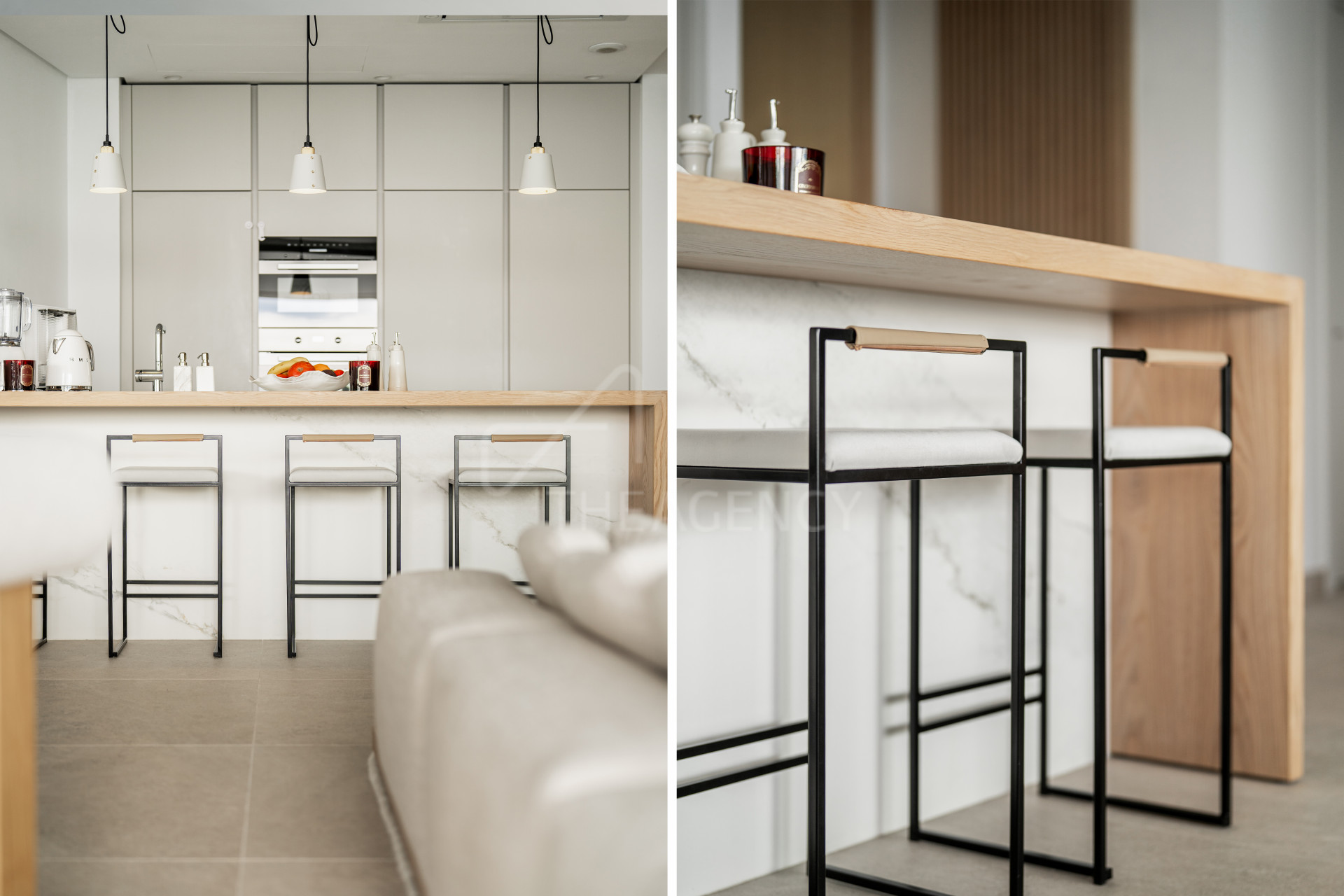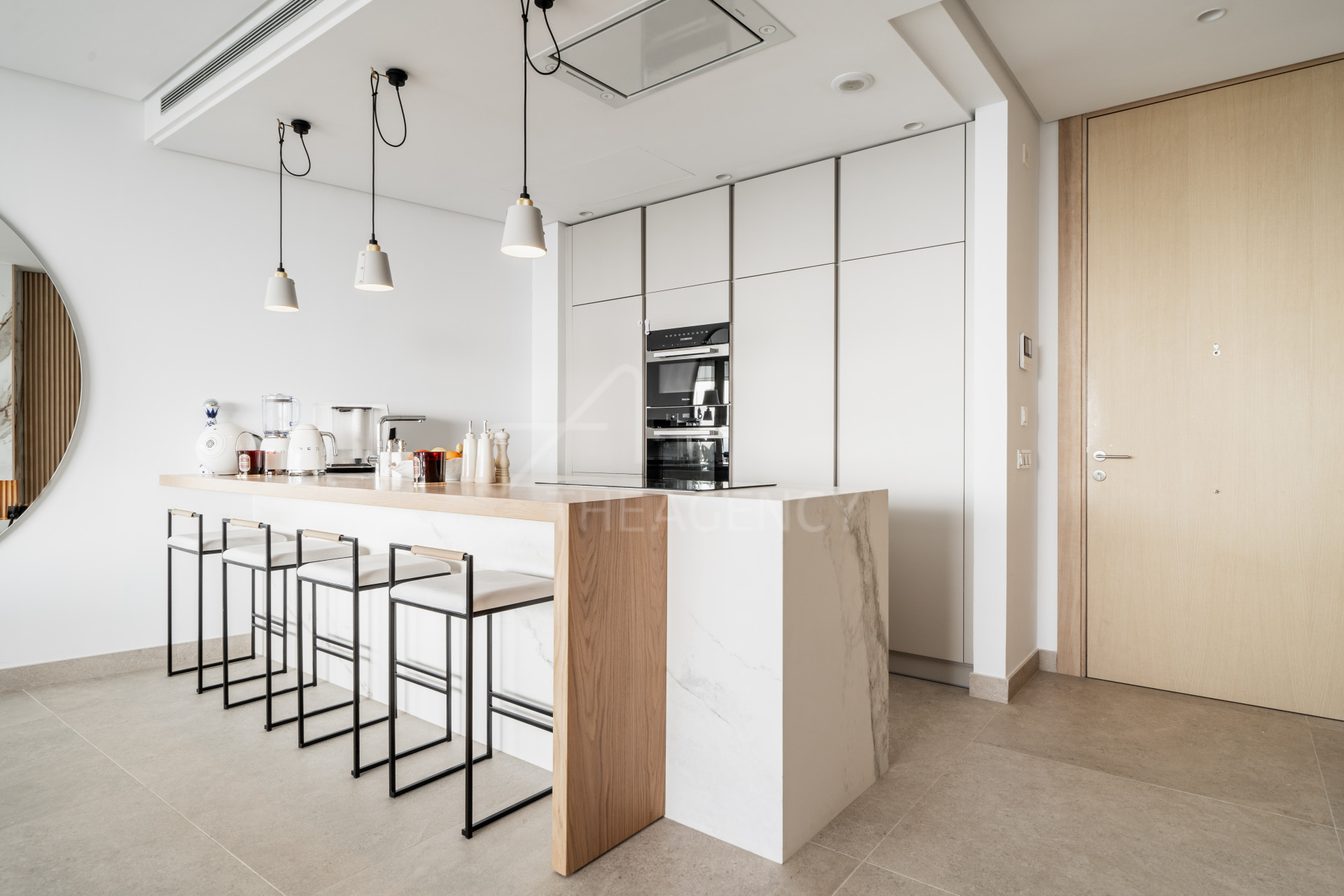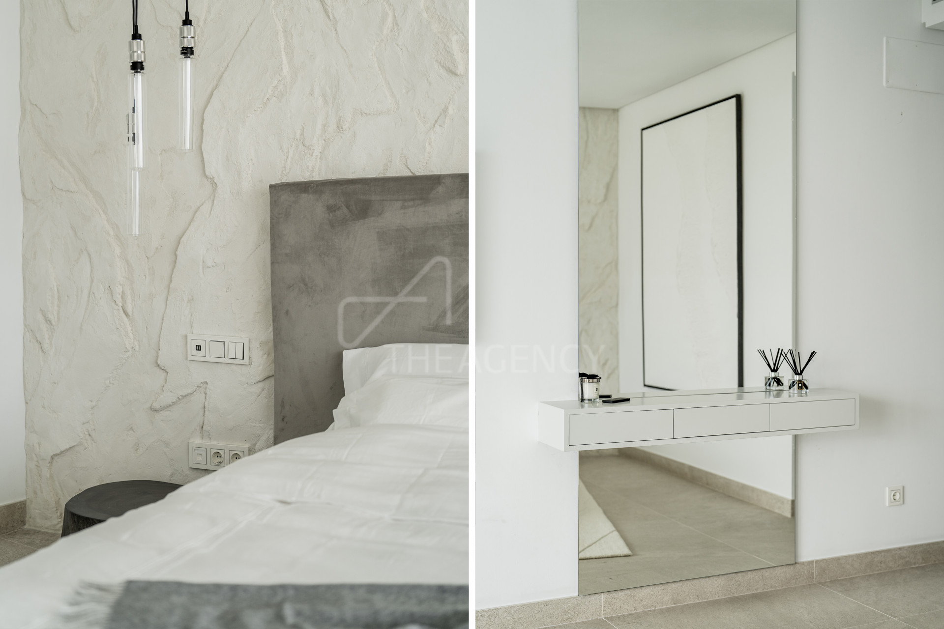 Contemporary 2 bedroom apartment in The View offering high-quality and top-tier materials and furnishings, as well as a spacious southwest-facing terrace where every corner unveils breathtaking panoramic views of the sea, golf course, and mountains.