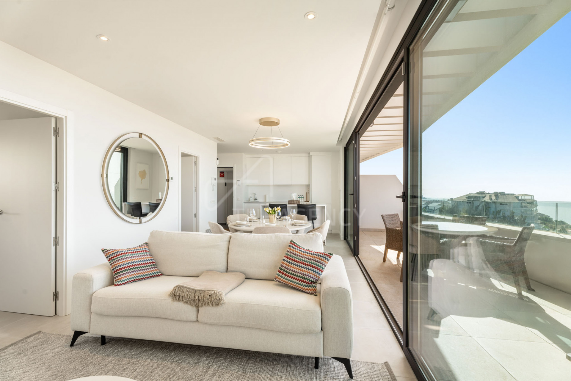 • Open-plan living and dining area with sea-facing terraces