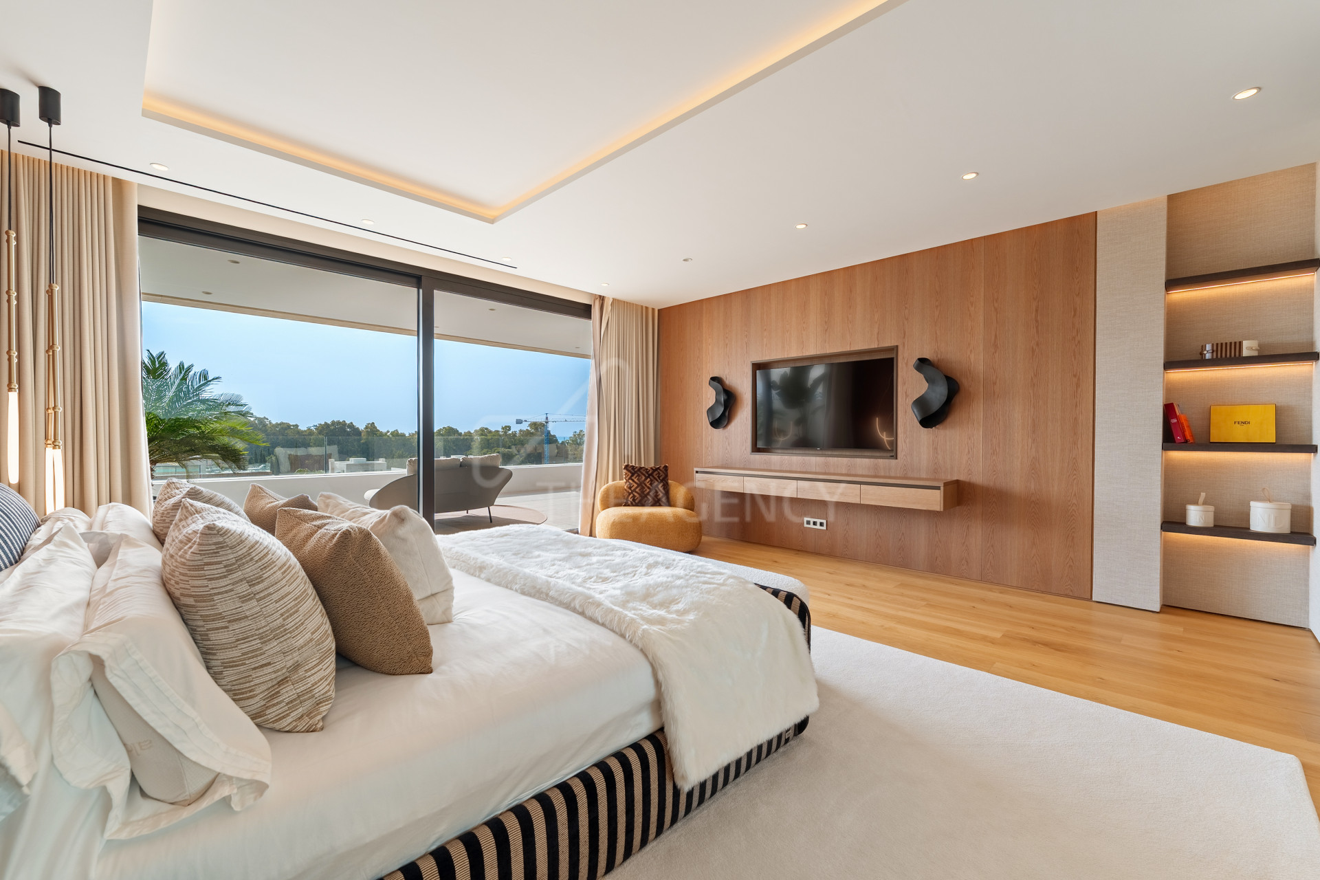 Set within a gated and exclusive community along Marbella’s Golden Mile, the property benefits from a secure and discreet environment with comprehensive amenities. Residents have access to a full-sized basketball court, a state-of-the-art gym, a professional golf simulator, and multiple outdoor pools designed for both relaxation and exercise. Landscaped pathways, 24-hour security, and on-site management support a lifestyle of comfort and efficiency.