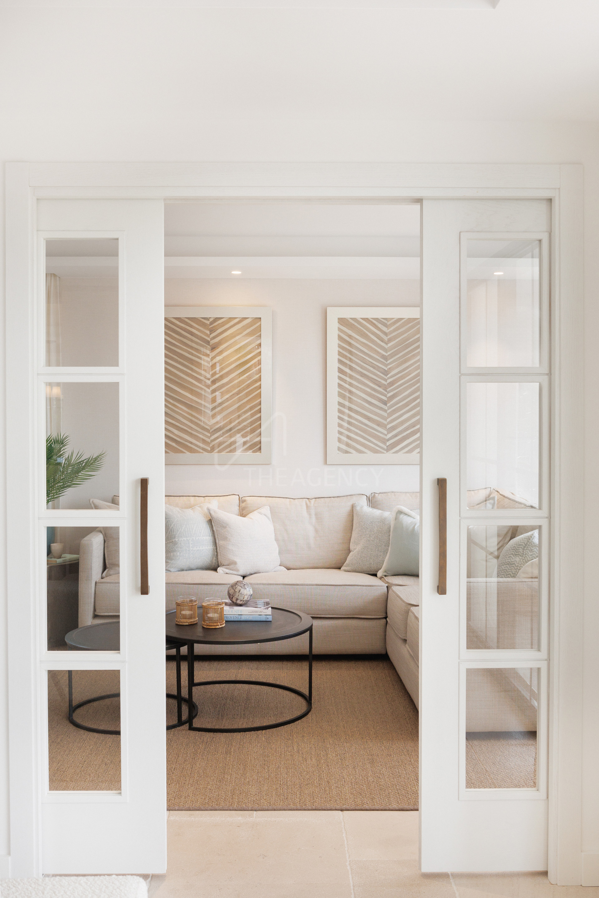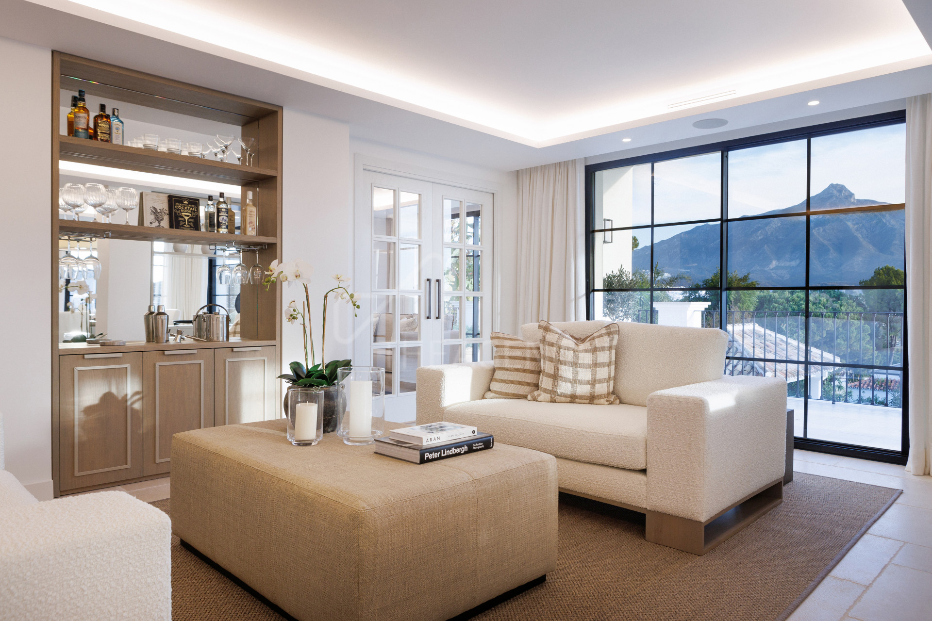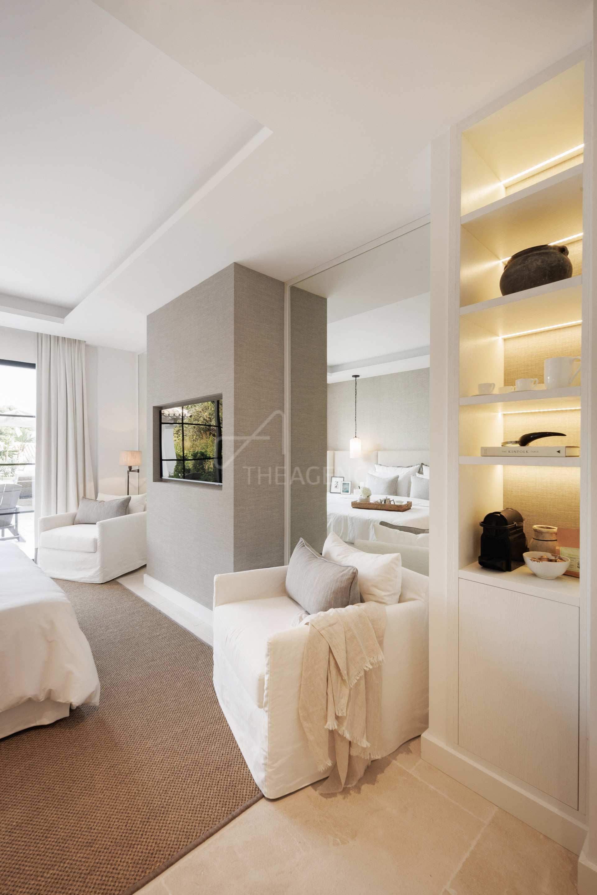 Positioned frontline to the golf course in the heart of Nueva Andalucía, this five-bedroom villa integrates Mediterranean architecture with understated Balinese accents. The residence is...