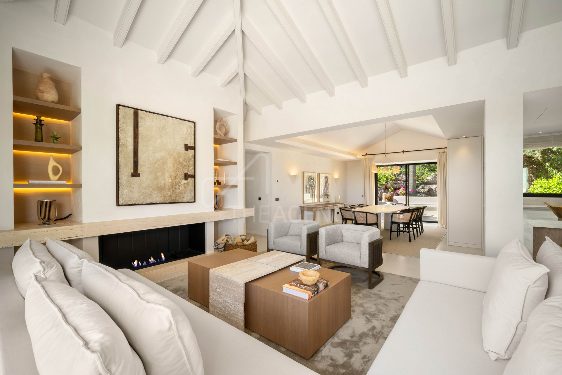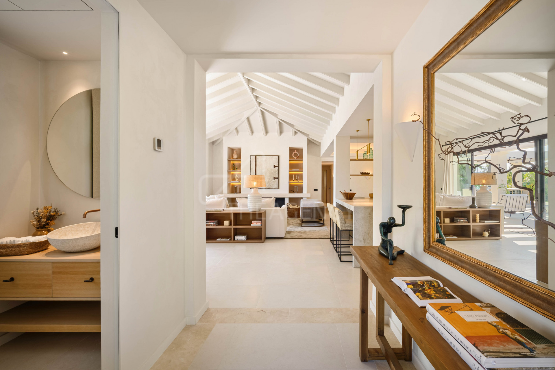 Set on a private 855 m² plot in the heart of Nueva Andalucía, this fully renovated single-level villa offers 241 m² of built space and 146 m² of terraces. South-west facing, the property benefits from open views across the valley toward the sea, while remaining close to golf courses, dining, and coastal amenities.